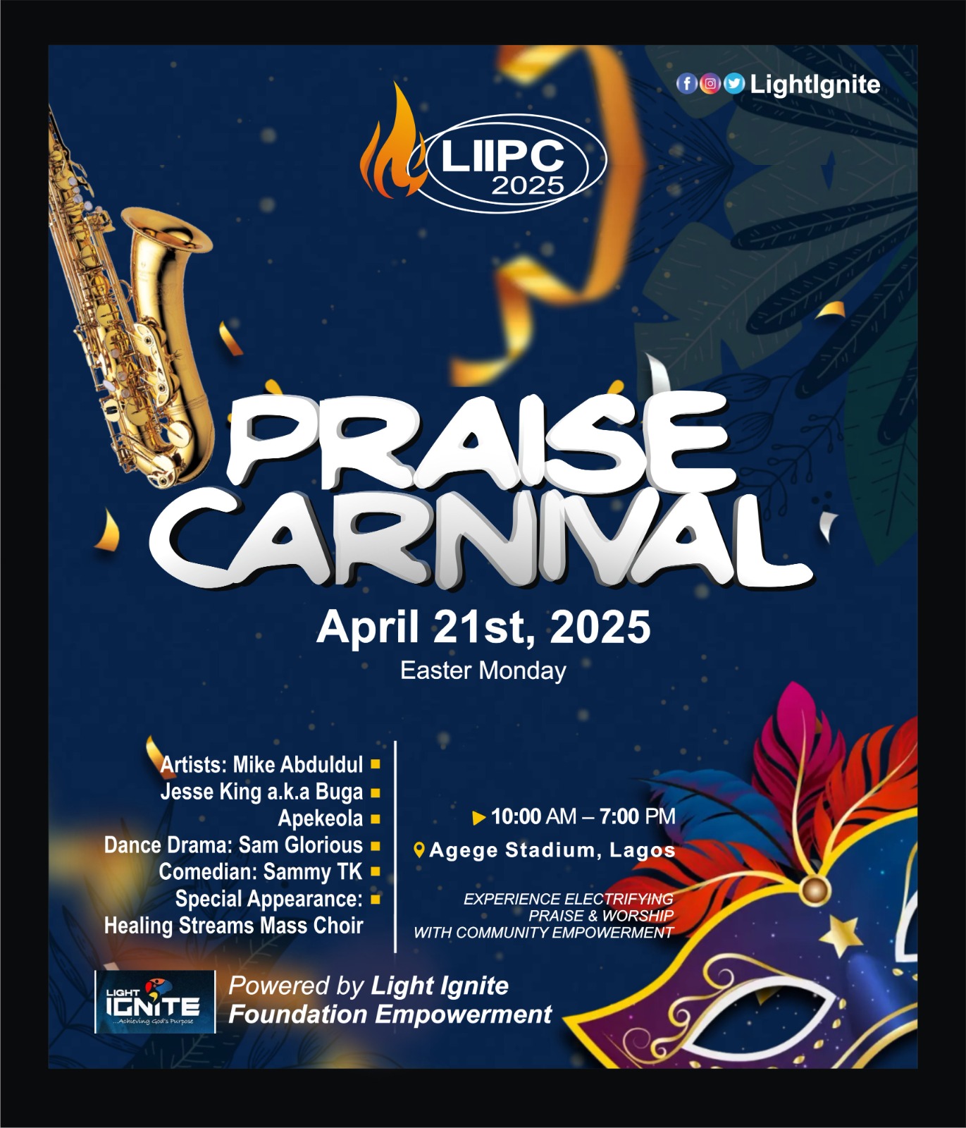 Lagos, Nigeria – The Light Ignite Foundation Empowerment is excited to announce the much-anticipated Light Ignite Praise Carnival (LIPC) 2025! This grand gathering of worshippers will take place on Easter Monday, April 21st, 2025, at 10 AM at Agege Stadium, Lagos.