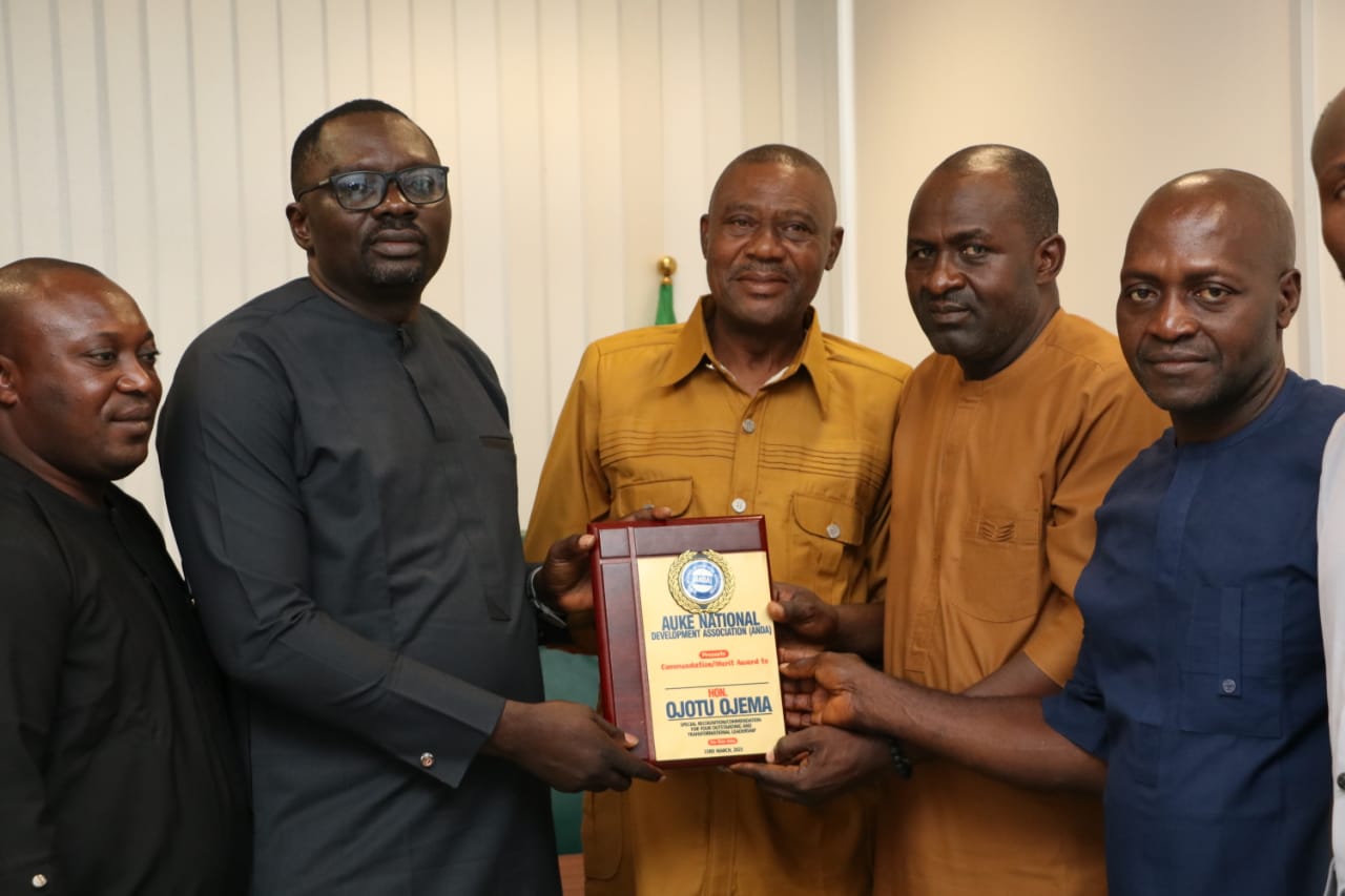 A high-powered delegation from Auke Community in Apa LGA, under the auspices of Auke National Development Association (ANDA), on Friday, March 21st, 2025, paid a “Thank-You” visit to the Member representing Apa/Agatu Federal Constituency and Chairman, House Committee on National Inland Waterways, Chief. Hon. Pst Ojotu Ojema FESMI, at his National Assembly Office, to appreciate him for what he has done for their community.