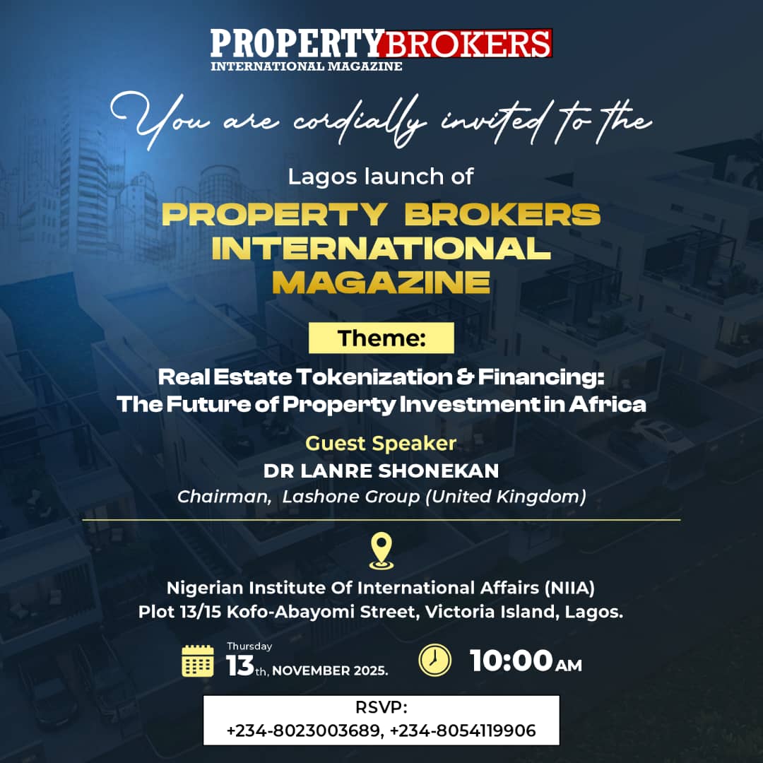 Lagos To Host Grand Launch of Property Brokers International Magazine …Spotlight Will Be on Real Estate Tokenization and Financing as the Future of Property Investment in Africa